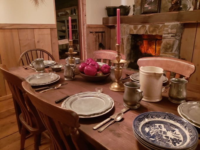 The antiques throughout the home are not replicas. Every piece is authentic to the 1800–1830 era, sourced from antique stores in nearby hamlets and villages. The bible on the kitchen table is an original 1828 Cooperstown edition — the kind that would have been present in most Christian homes in the area. Four matching chairs were donated by descendants of Orson Hyde and his wife. All other antiques were purchased to furnish the home as faithfully as possible.